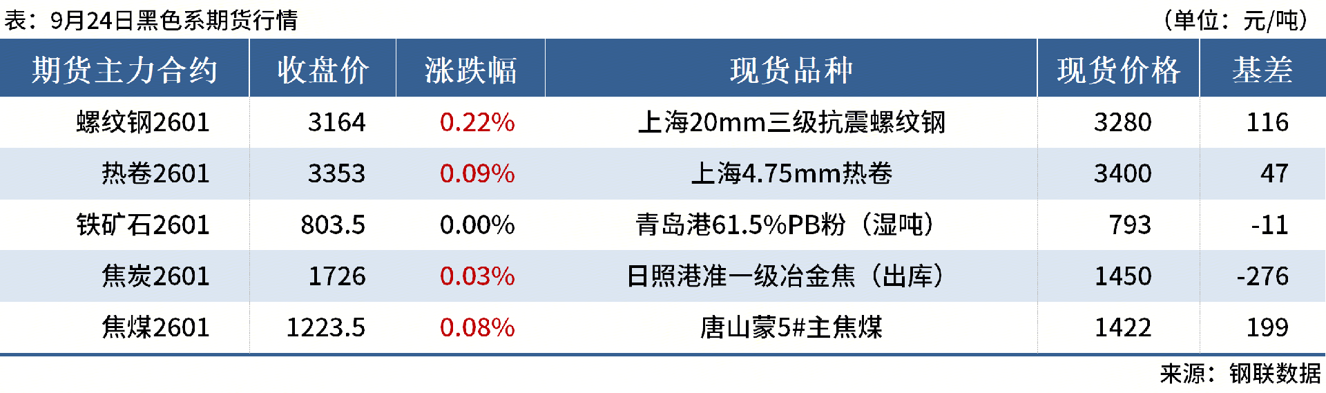 ◎大商所公告,自9月29日結(jié)算時起,鐵礦石品種期貨合約漲跌停板幅度調(diào)整為11%,交易保證金水平調(diào)整為13%;焦炭品種期貨合約漲跌停板幅度調(diào)整為11%,交易保證金水平維持不變;焦煤品種期貨合約漲跌停板幅度調(diào)整為11%,交易保證金水平調(diào)整為15%。