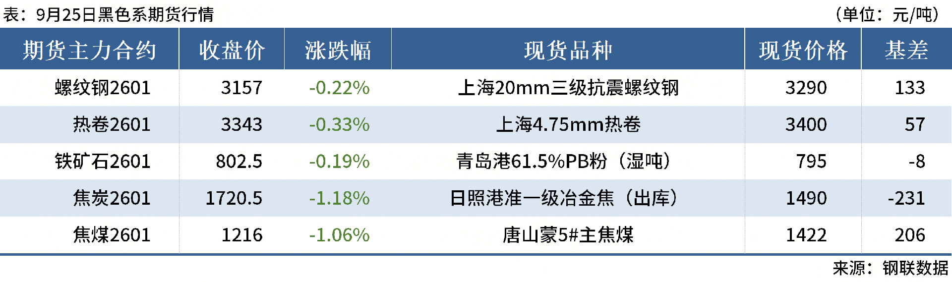 ◎9月25日,全國主港鐵礦石成交111.10萬噸,環(huán)比減28.3%;237家主流貿(mào)易商建筑鋼材成交10.82萬噸,環(huán)比增4.1%。