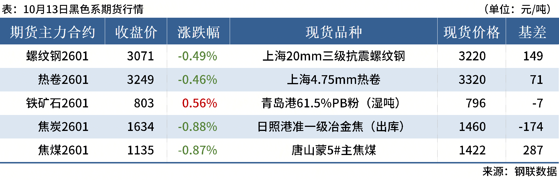 ◎ 10月13日,全國主港鐵礦石成交95.20萬噸,環(huán)比增88.1%;237家主流貿(mào)易商建筑鋼材成交10.60萬噸,環(huán)比增16%。