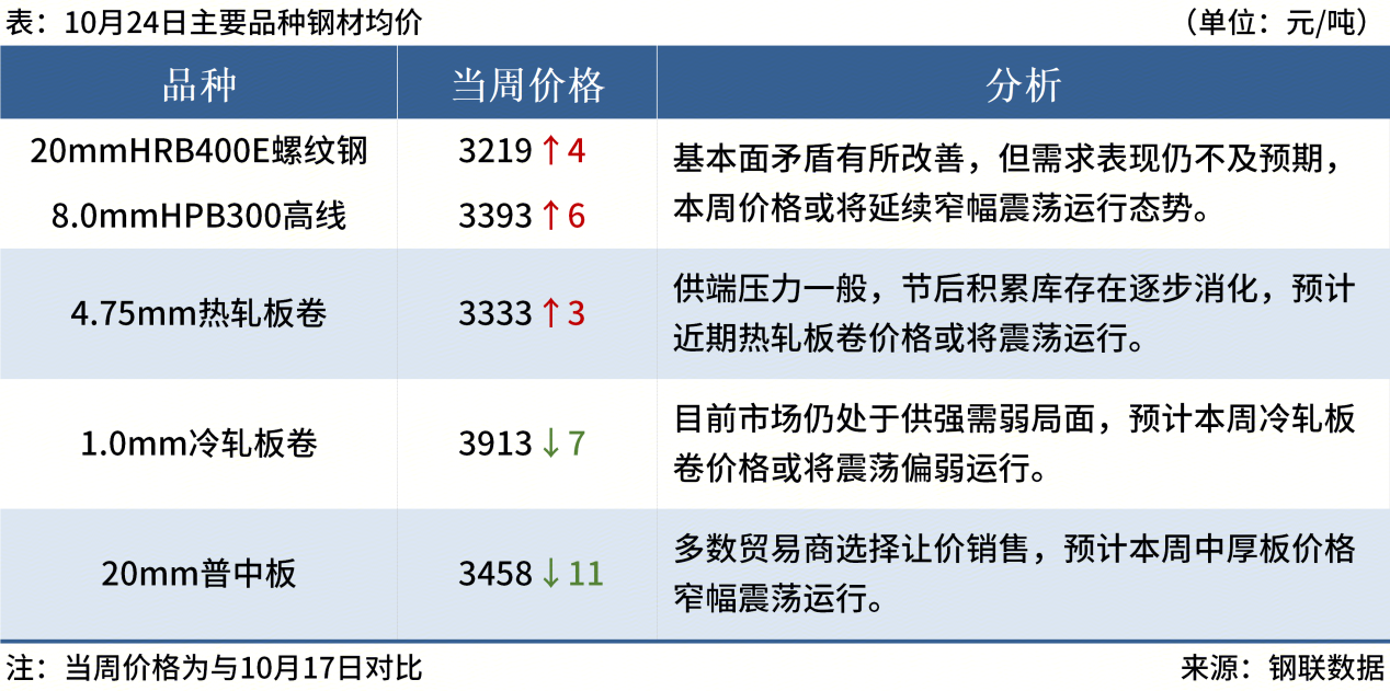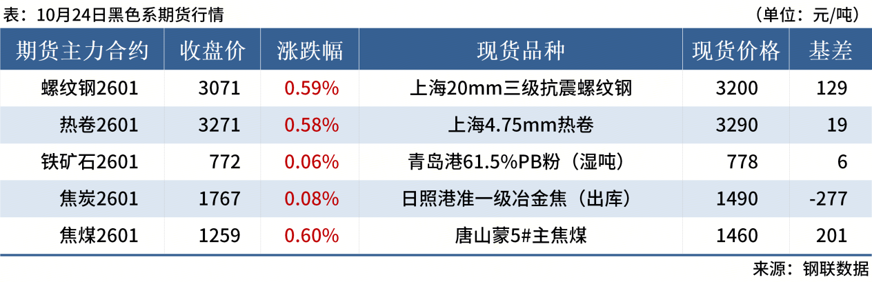 ◎ 10月24日,全國主港鐵礦石成交80.20萬噸,環(huán)比減16.4%;237家主流貿(mào)易商建筑鋼材成交9.11萬噸,環(huán)比減13.5%。