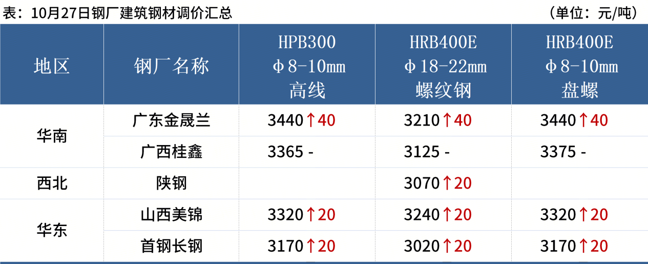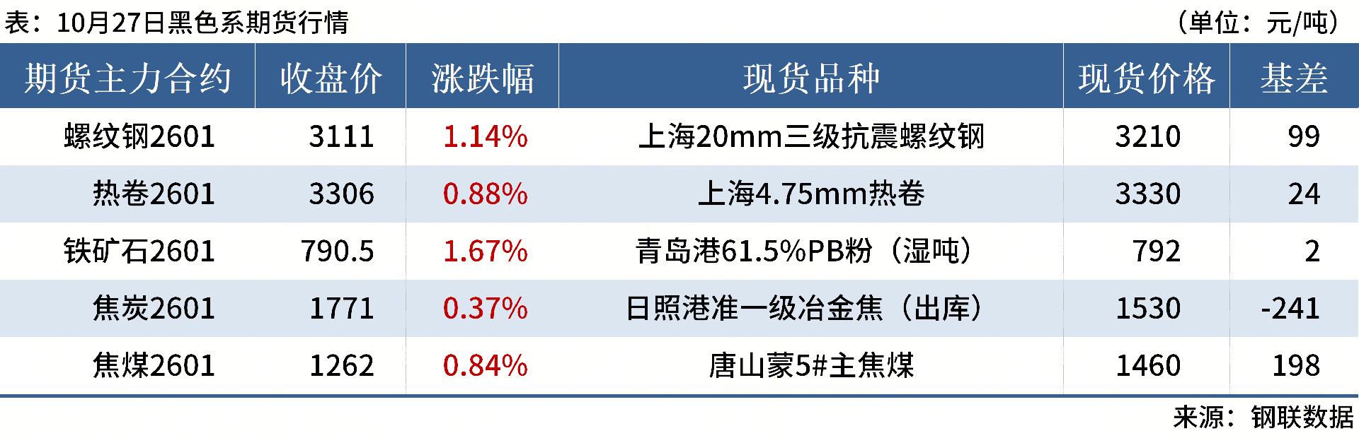 ◎ 焦炭第二輪提漲全面落地,山東、河北主流鋼廠發(fā)函對焦炭采購價(jià)上調(diào),濕熄漲幅50元/噸,干熄漲幅55元/噸,10月27日0時(shí)起執(zhí)行。