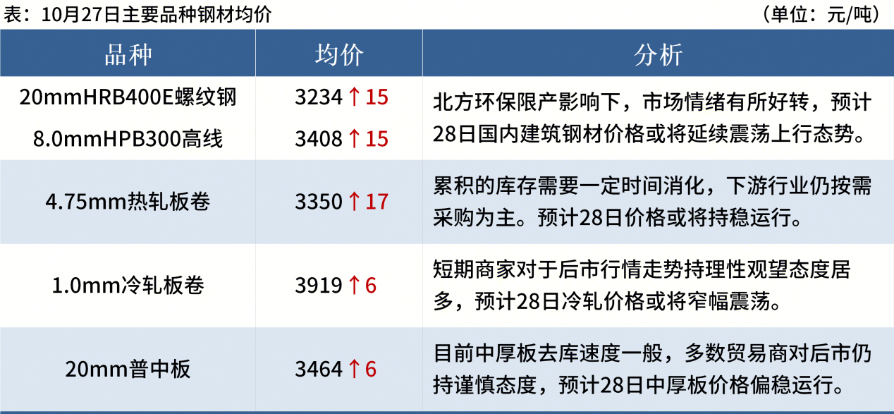 ◎ 10月27日,全國主港鐵礦石成交73.00萬噸,環(huán)比減9%;237家主流貿(mào)易商建筑鋼材成交12.34萬噸,環(huán)比增35.5%。