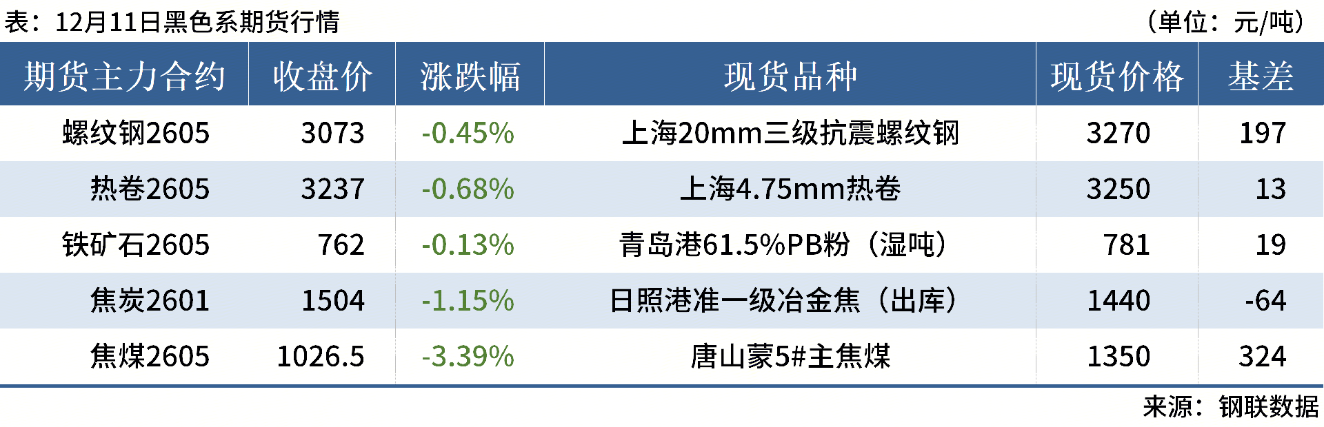 ◎ 12月11日,全國主港鐵礦石成交99.10萬噸,環(huán)比增38.6%;237家主流貿(mào)易商建筑鋼材成交9.22萬噸,環(huán)比減19.3%。